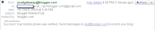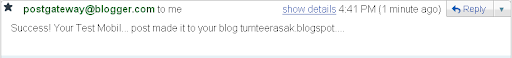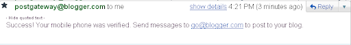 พร้อมกันนั้นก็จะมีอีเมล์ตอบกลับจาก blogger ด้วย (ในที่นี้ your mobile phone = Gmail นั่นเอง)