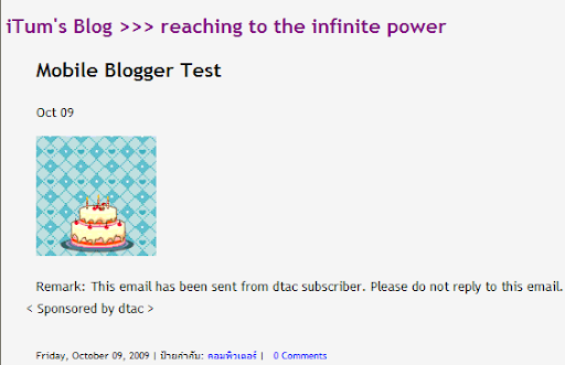 MMS ที่ส่งมาจากมือถือและ อีเมล์ตอบรับจาก Blogger ว่า โพสลง Blog เรียบร้อย